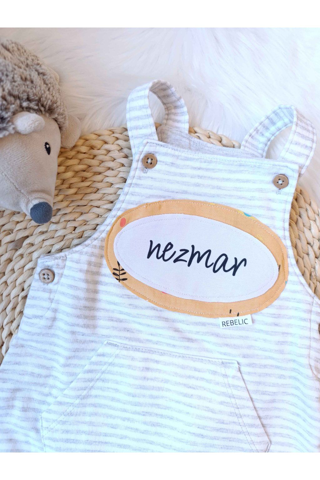 Máte doma bábätko, ktoré neposedí ani minútu a jeho energia je doslova nekonečná? Naše svetlosivé pásikavé dupačky s nápisom „nezmar“ sú stvorené pre všetkých malých dobrodruhov, ktorí potrebujú maximálnu voľnosť pohybu. Výrazná nášivka v žltom ovále s jemným prírodným motívom dodáva tomuto klasickému kúsku moderný a hravý šmrnc.